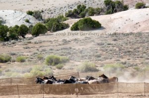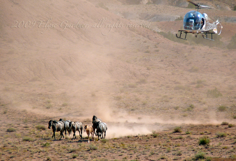 In September 2009, the Bureau of Land Management (BLM) scheduled Cattoor Livestock Roundups, who specializes in capturing wild horses by chasing them into a pen with a helicopter, to come catch all the Prior Mountain wild horses in order to remove them down to 120 horses.  There were around 190 horses at the time:  beautiful, healthy horses, as you can see.